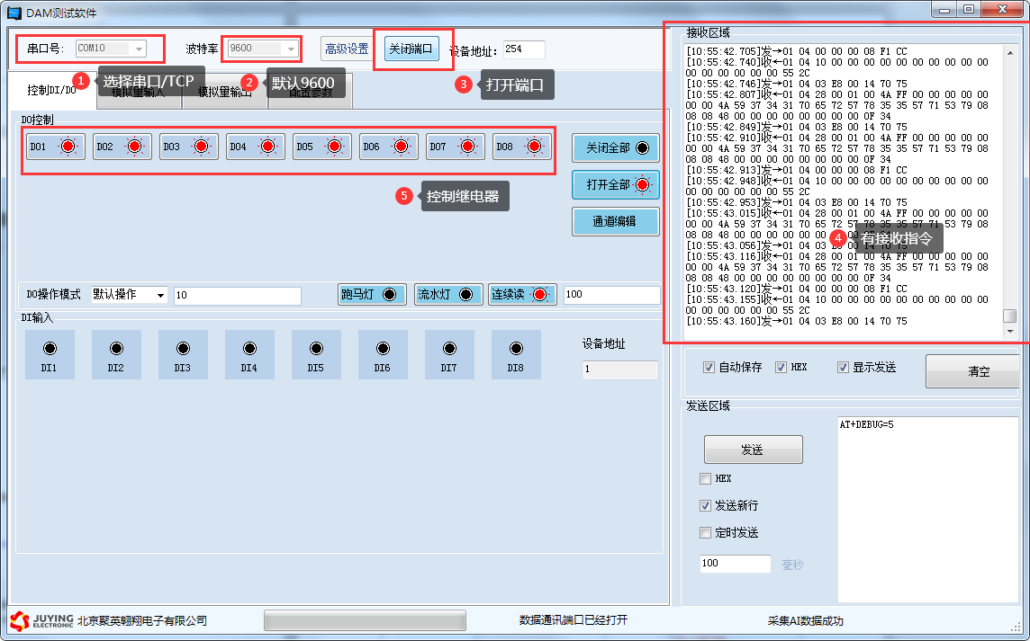 指令可通過“聚英翱翔DAM調試軟件”,勾選調試信息來獲取。