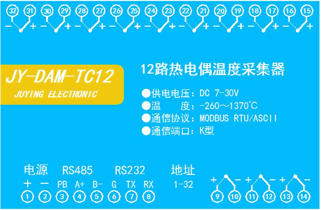 JY-DAM-TC12 12路熱電偶溫度采集模塊參數(shù)