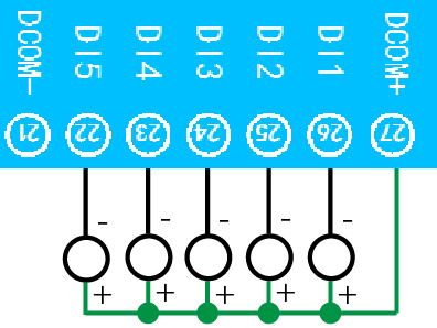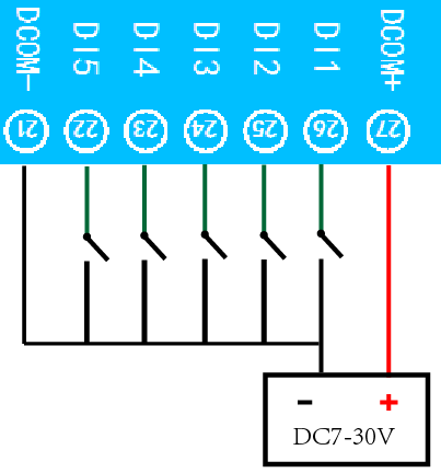 下圖中的電源部分為傳感器供電,AI1-AI8接傳感器信號正,ACOM-為傳感器信號負(fù),ACOM+不用。