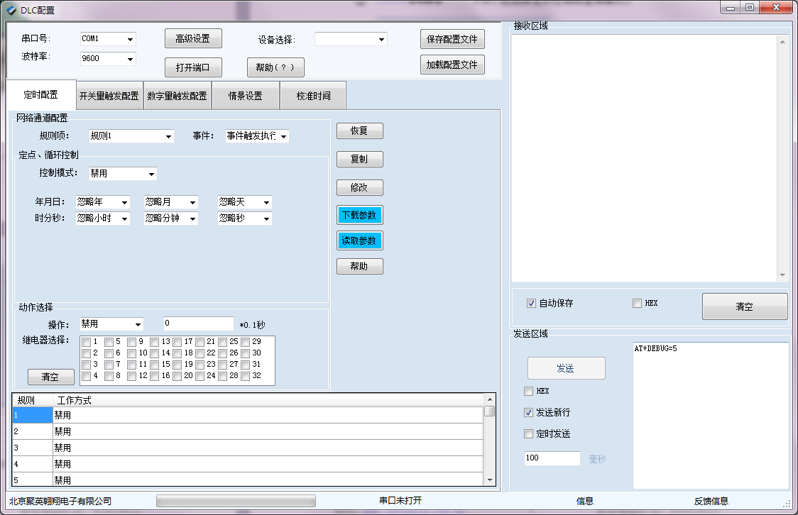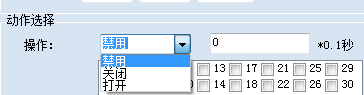 選擇操作動作,打開或者關(guān)閉,后面的參數(shù)為點(diǎn)動時間,如:選擇打開,設(shè)置時間后,則超過時間繼電器自動關(guān)閉,選擇關(guān)閉,則超過時間后繼電器自動打開。