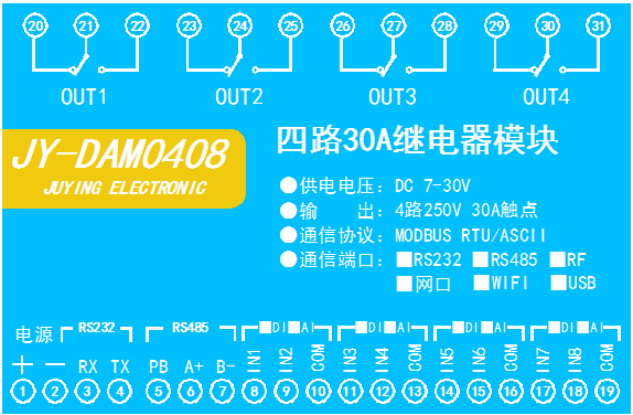 型號(hào) | modbus | RS232 | RS485 | USB | WiFi | 繼電器 | 輸入 |