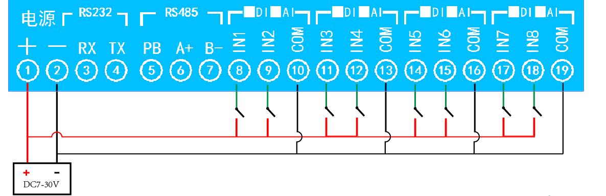 模塊本身帶有光耦輸入和繼電器輸出的板卡模塊,在該模式下,光耦每輸入一次信號(hào),對(duì)應(yīng)的繼電器會(huì)吸合,其他未輸入信號(hào)光耦對(duì)應(yīng)繼電器會(huì)斷開(kāi)。即: