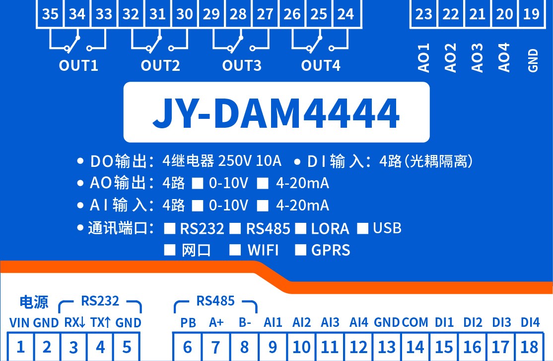 工業(yè)級繼電器控制板 4路繼電器控制(DO)4路光耦輸入(DI)4路模擬量輸入(AI)4路模擬量輸出(AO),4路繼電器控制輸出;4路光耦輸入(5-24V) ;4路12位分辨率模擬量電壓輸入;4路12位分辨率模擬量隔離輸出;支持RS232或隔離RS485通訊接...