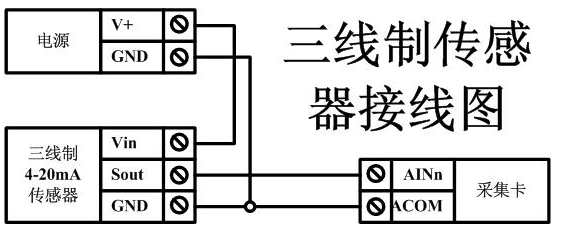 下圖中的電源部分為傳感器供電,AI1-AI8接傳感器信號正,ACOM-為傳感器信號負(fù),ACOM+不用。