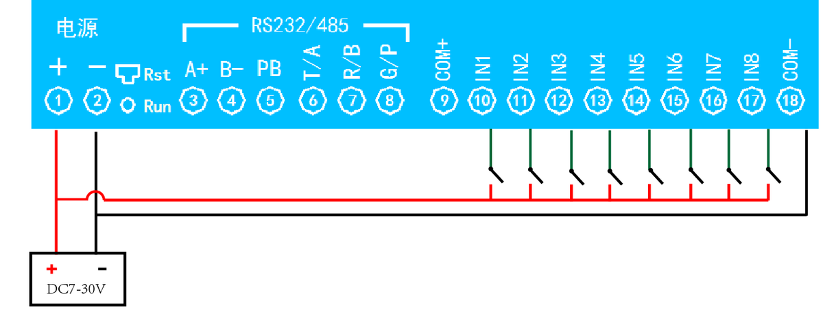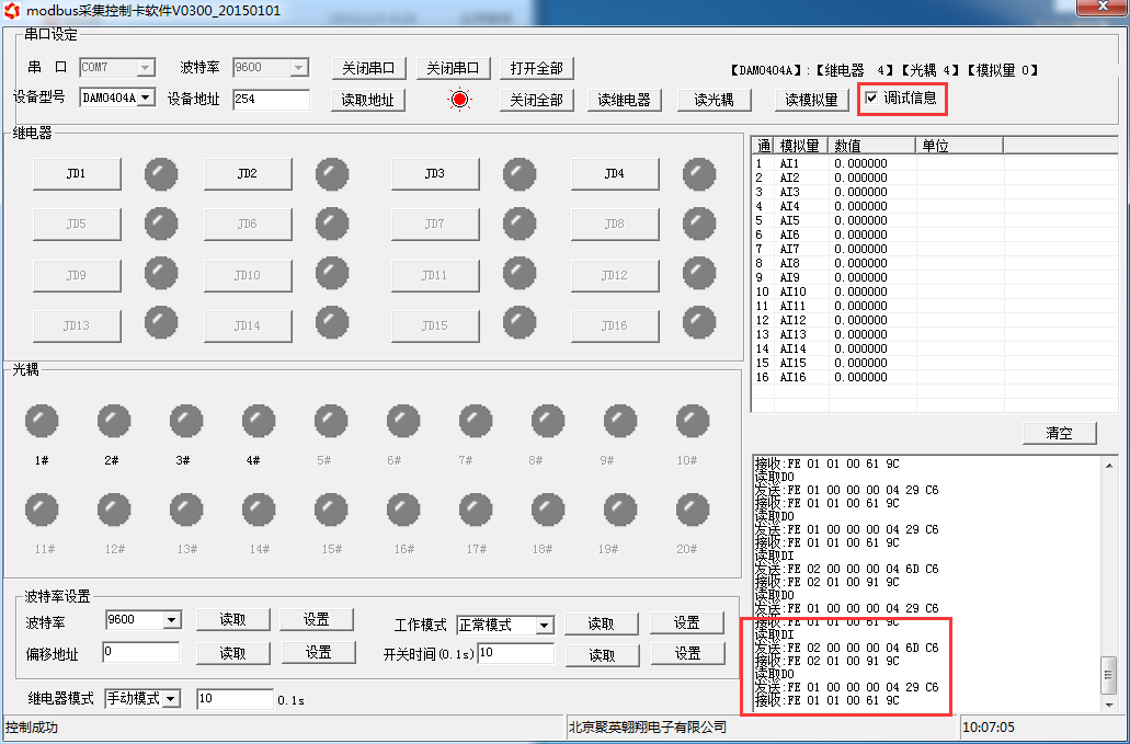 DAM0809MOS工業(yè)級(jí)繼電器控制板,8路三極管輸出(0C)9路開關(guān)量采集(DI) ,8路三極管輸出;9路開關(guān)量輸入;支持RS232或隔離RS485通訊接口;標(biāo)準(zhǔn)Modbus協(xié)議,支持Modbus RTU/ASCll;支持點(diǎn)動(dòng)輸出,聯(lián)動(dòng)功能(輸入控制輸出);...