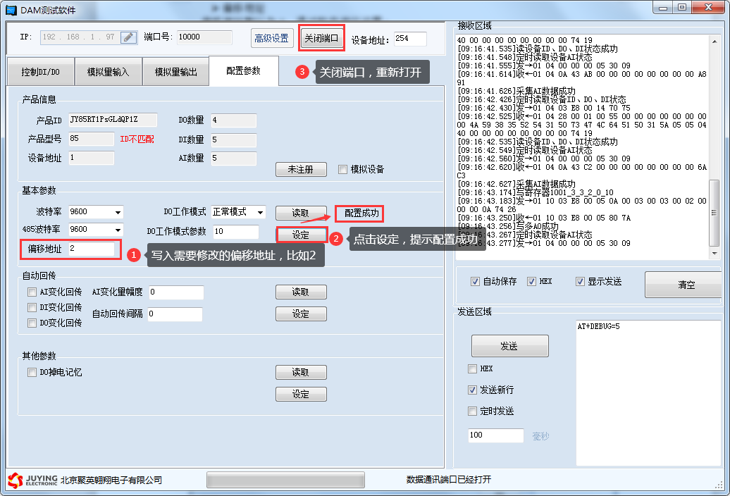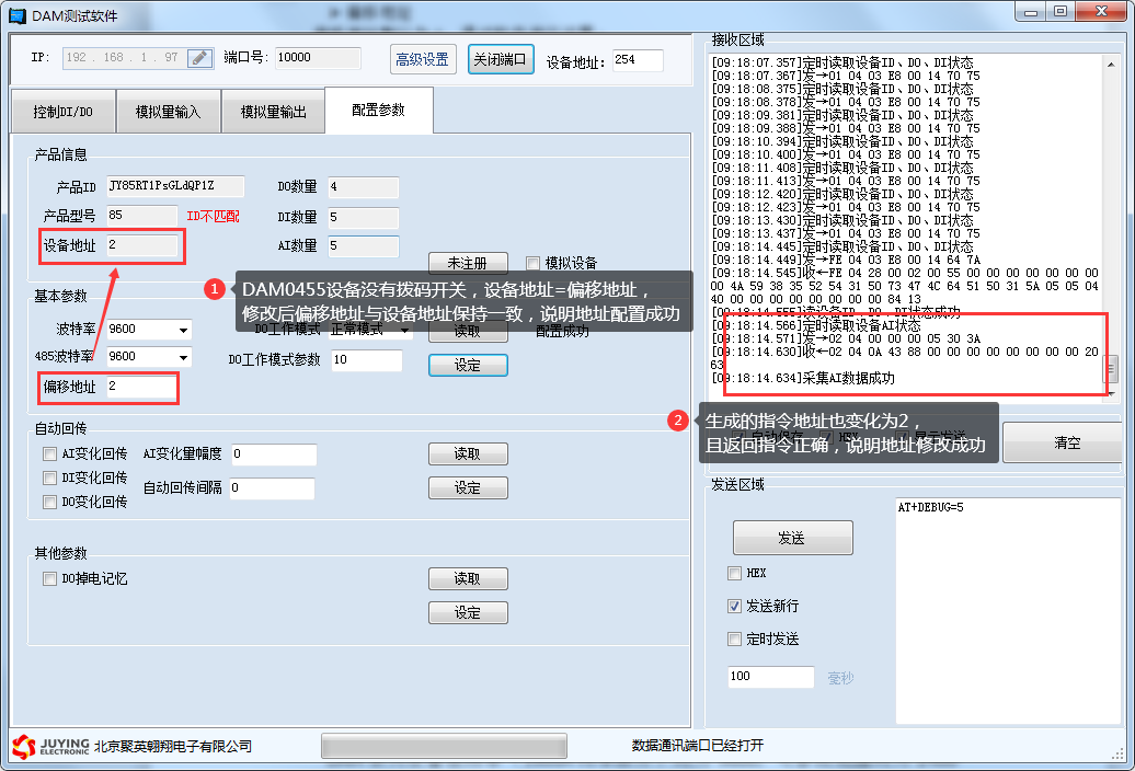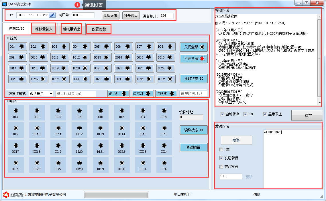 詳細使用說明參考:JYDAM調試軟件使用說明文檔