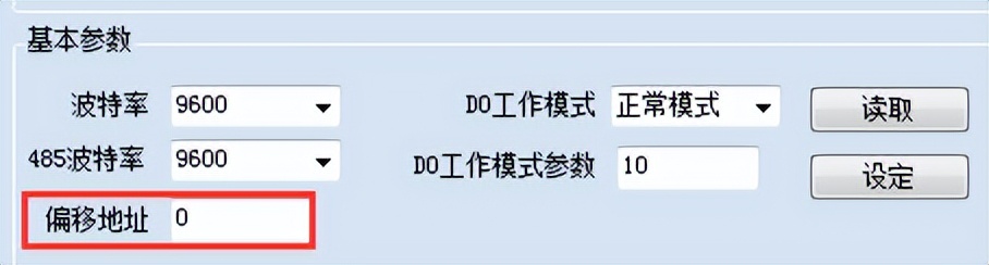 ②、設(shè)備通過(guò)IP地址來(lái)區(qū)分設(shè)備,設(shè)備地址默認(rèn)為254,若需修改設(shè)備地址,使用【JYDAM調(diào)試軟件】在配置參數(shù)里面修改偏移地址即可,如下圖所示: